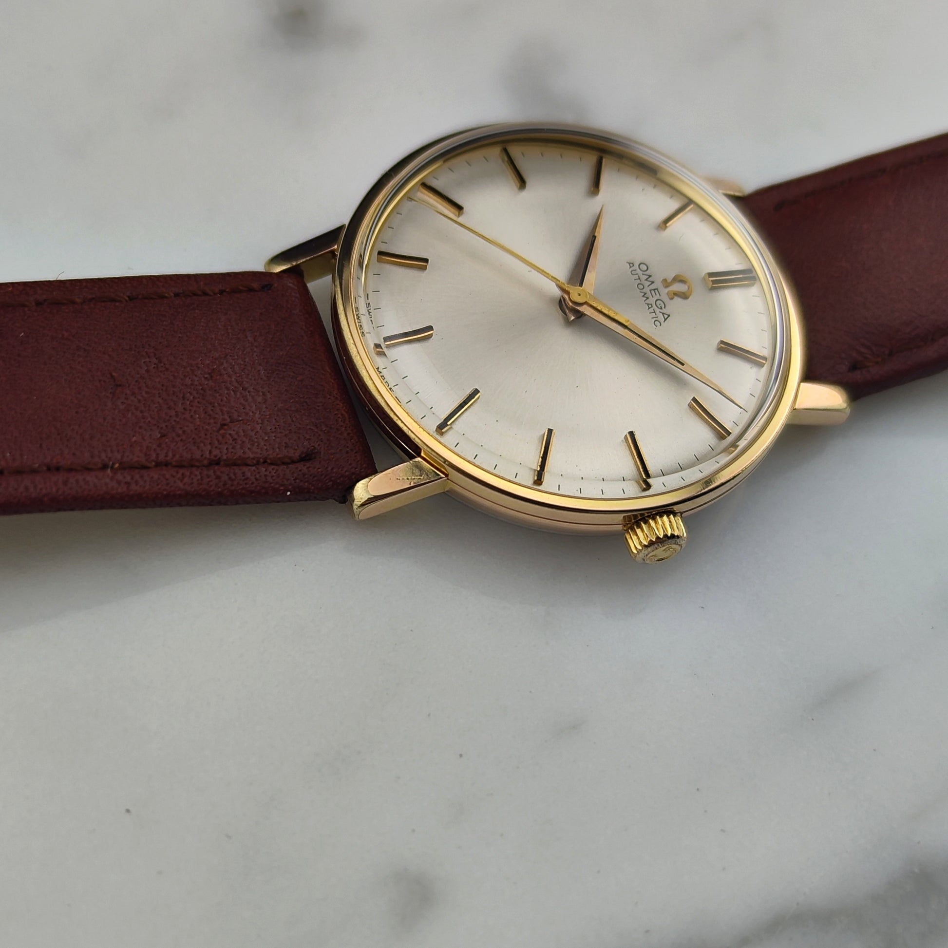 Omega Automatic Gold with White Dial (1967) [Ref. 161.00009]. This watch was freshly serviced by us in January 2026. A beautiful timepiece from the year 1967, combining classic design with reliable performance. A great vintage Omega — act fast!