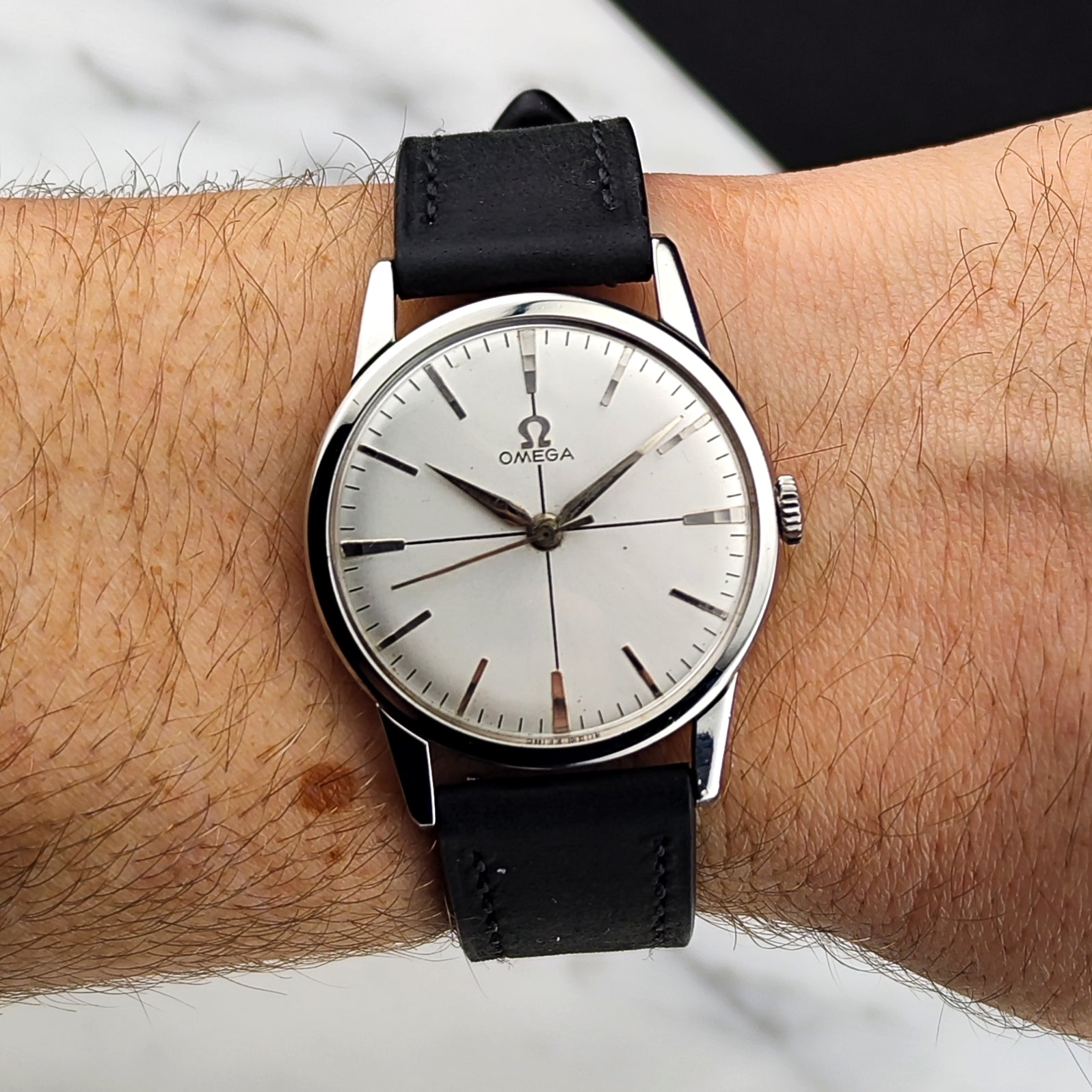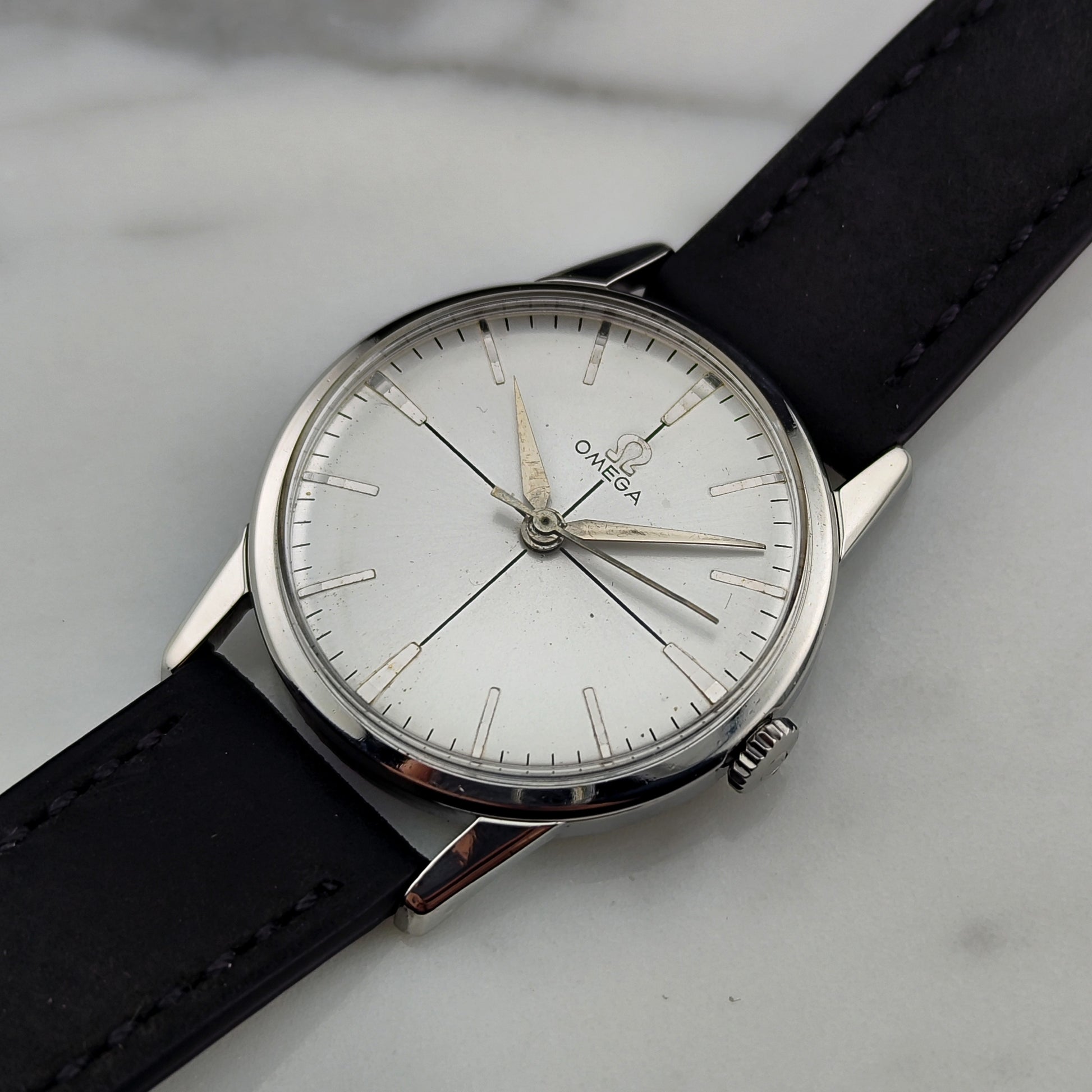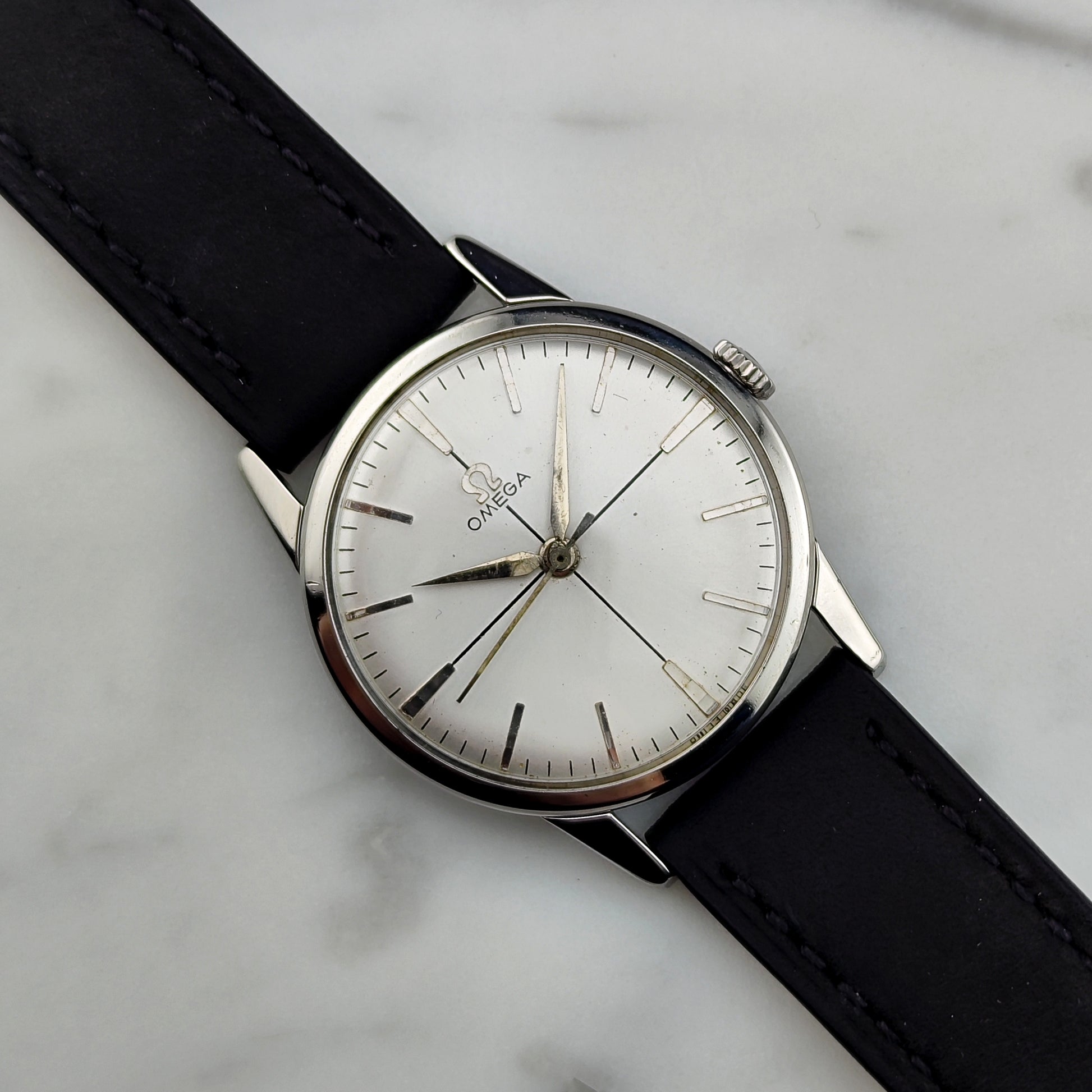 The Omega Classic Crosshair Dial from 1960 (Ref. 14714-2). The movement has been tested and inspected — a great option to get an affordable Omega from a dealer!