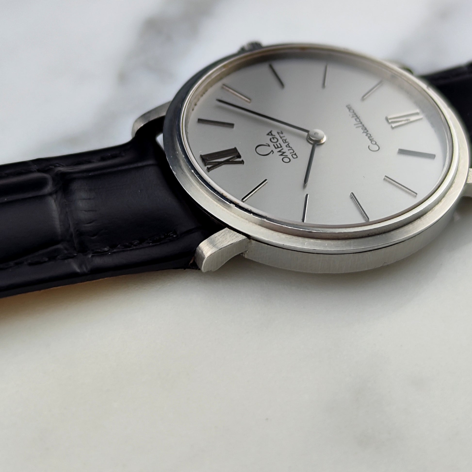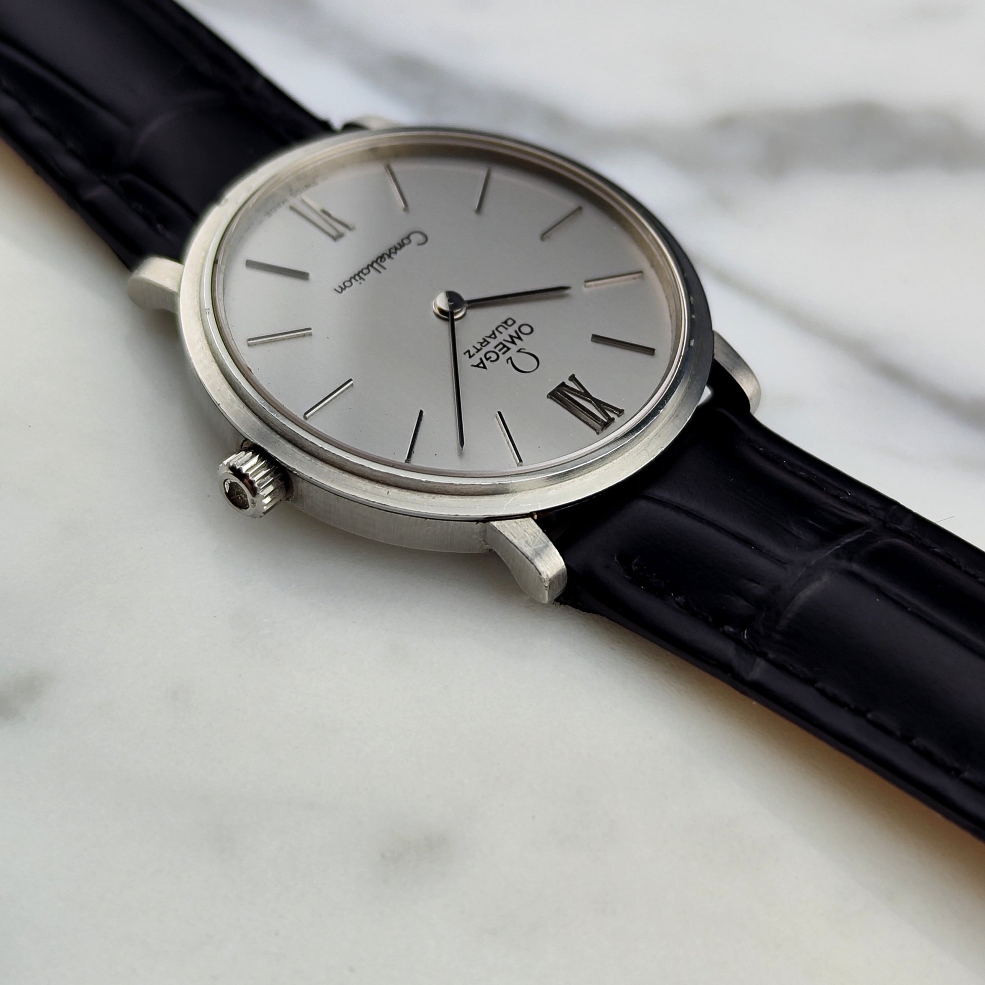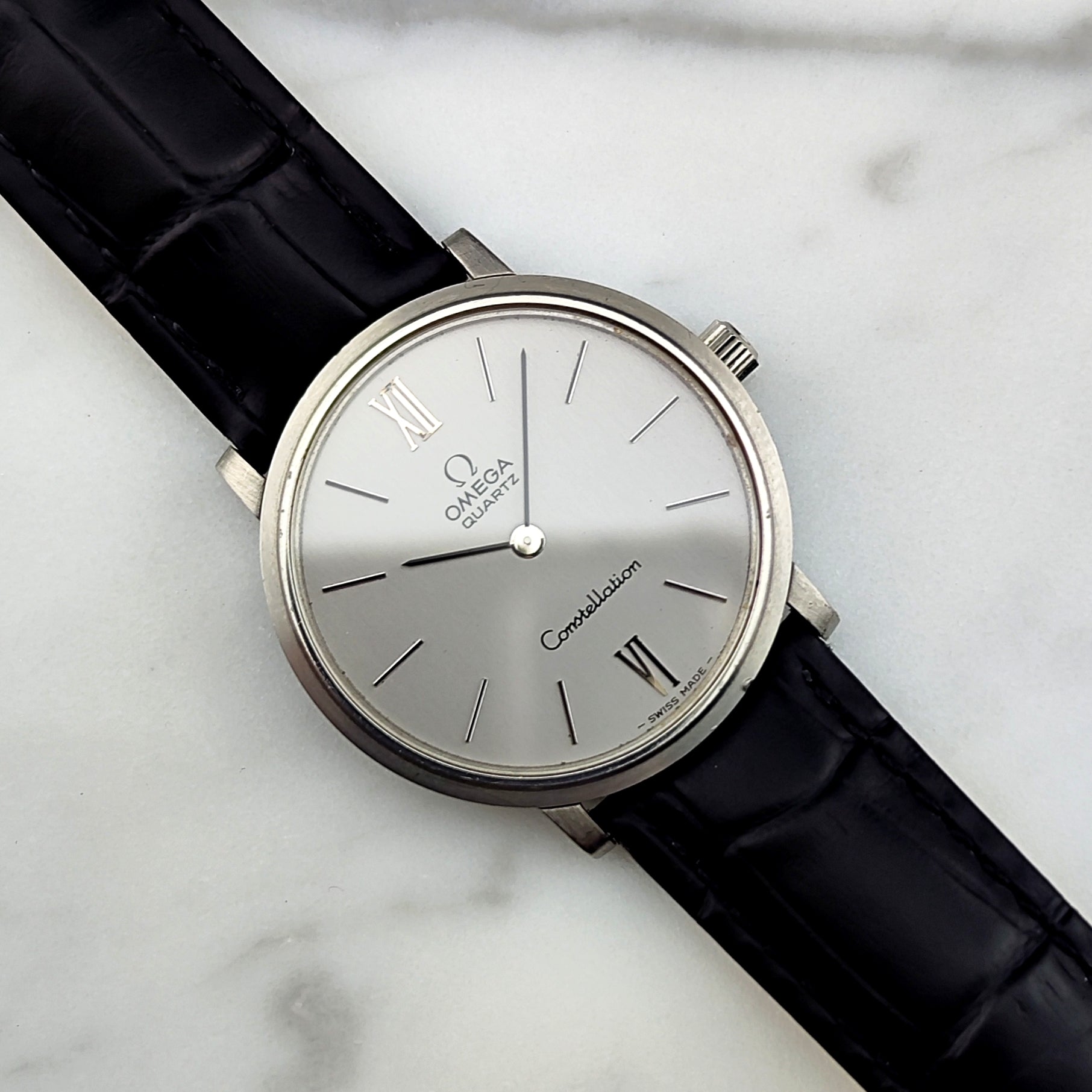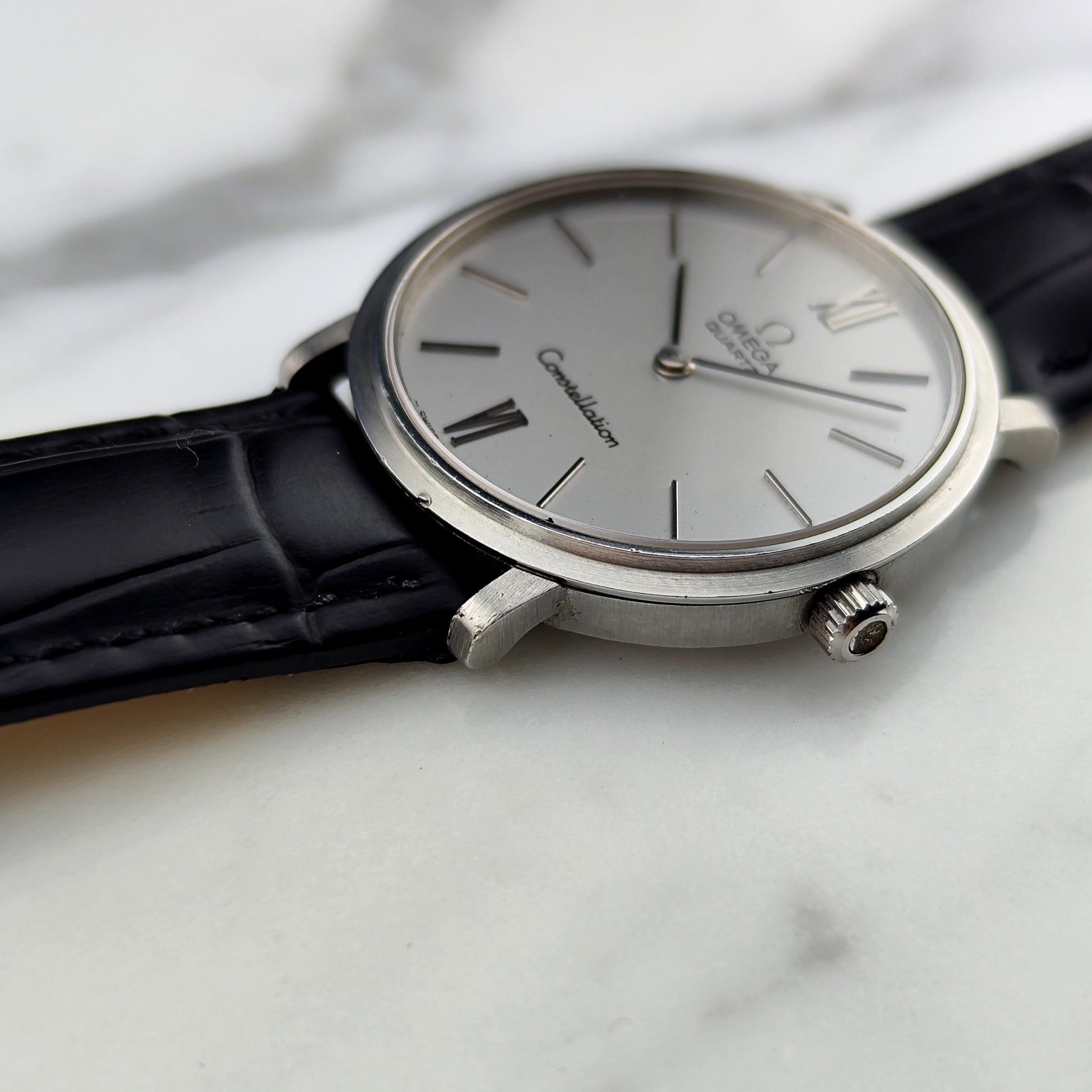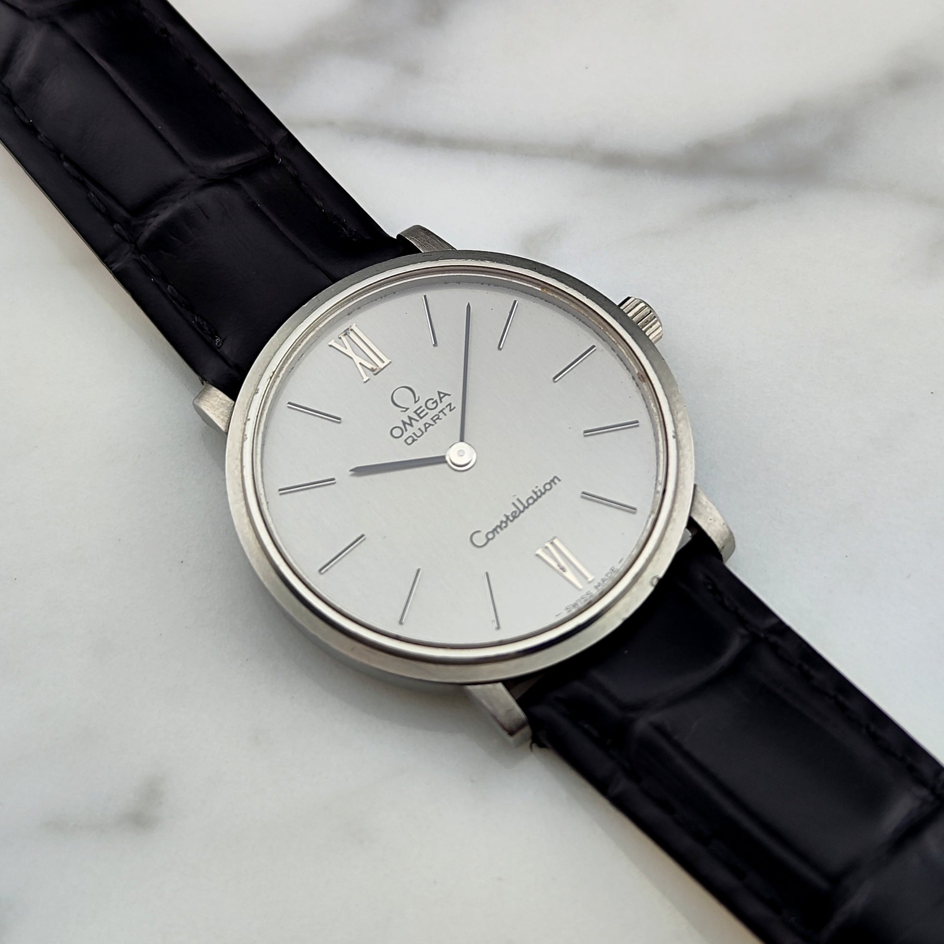 The OMEGA Constellation Quartz Silver [Ref. 191.0032] is a wonderful, historically significant timepiece. The movement has been tested and inspected. Everything on this watch is original, including the original leather strap, clasp, and crown.