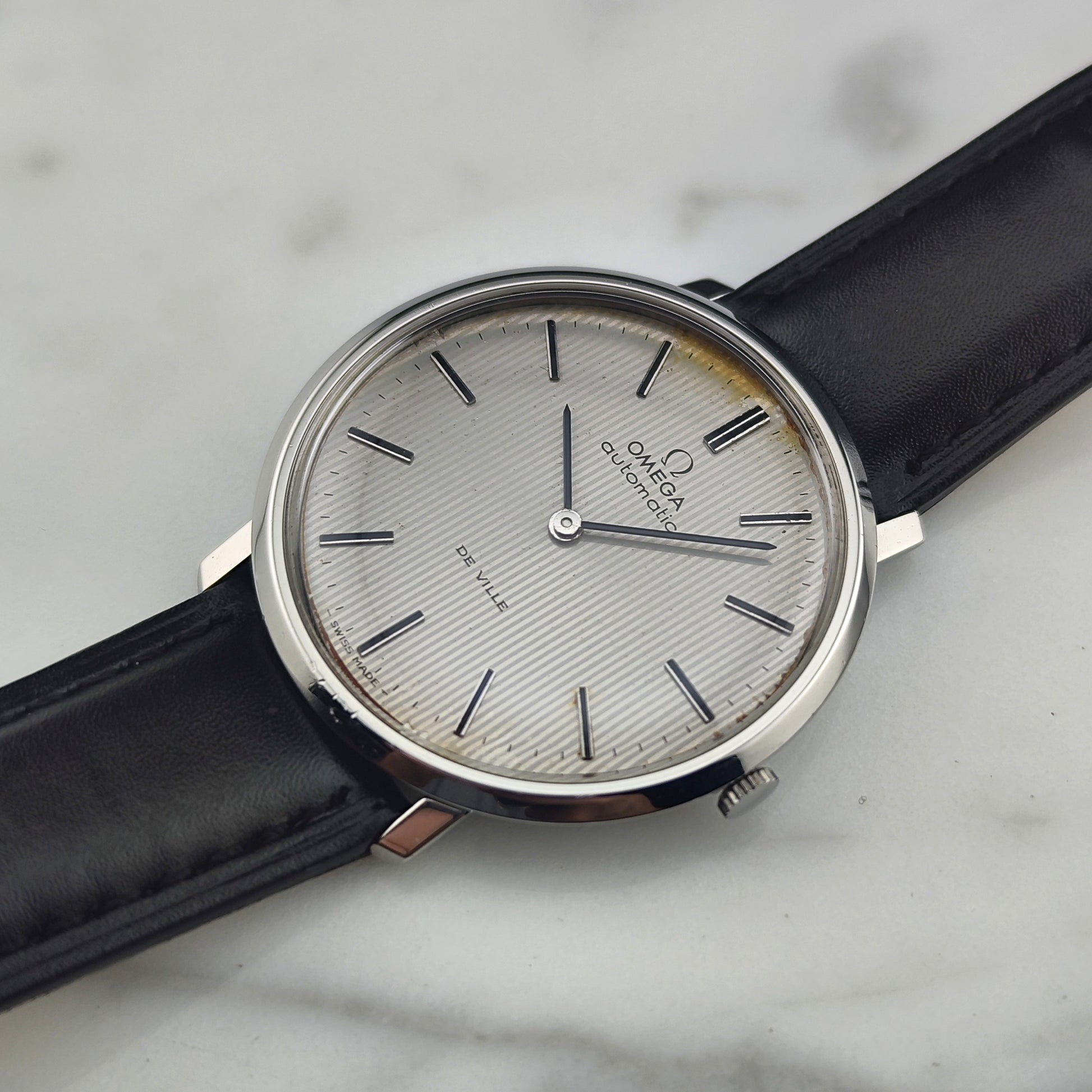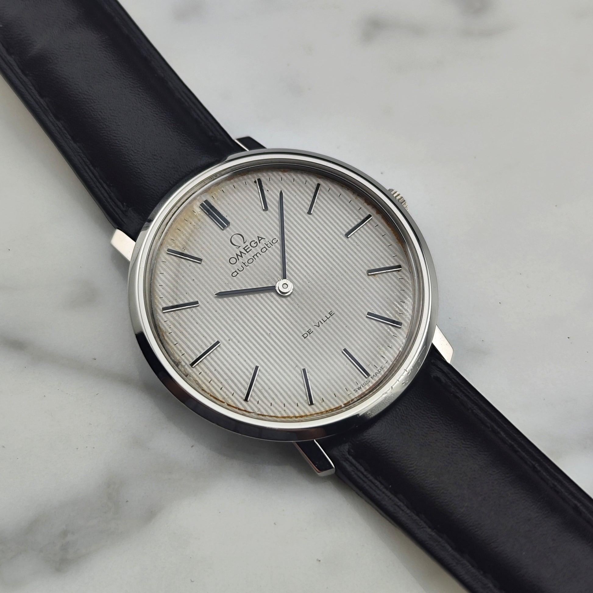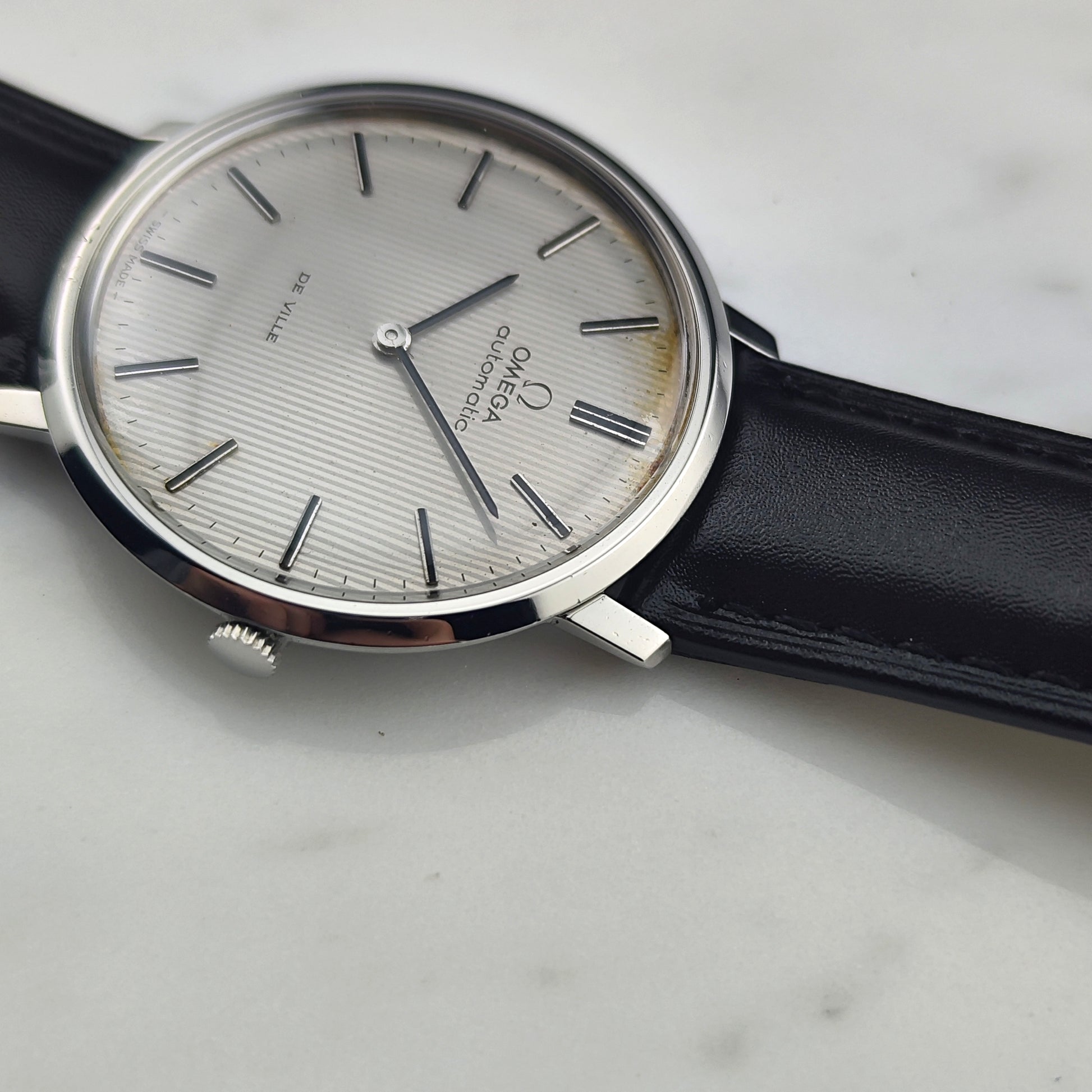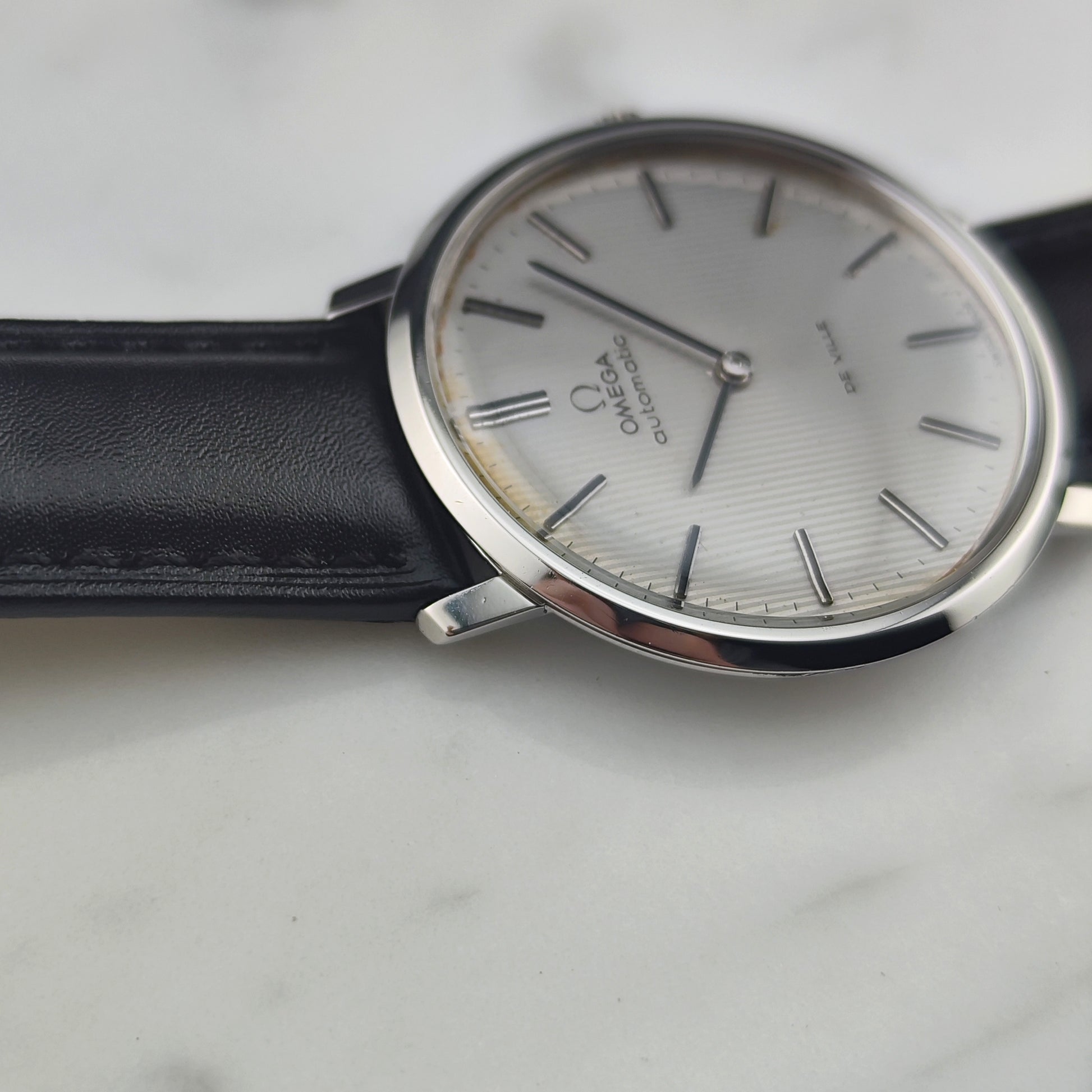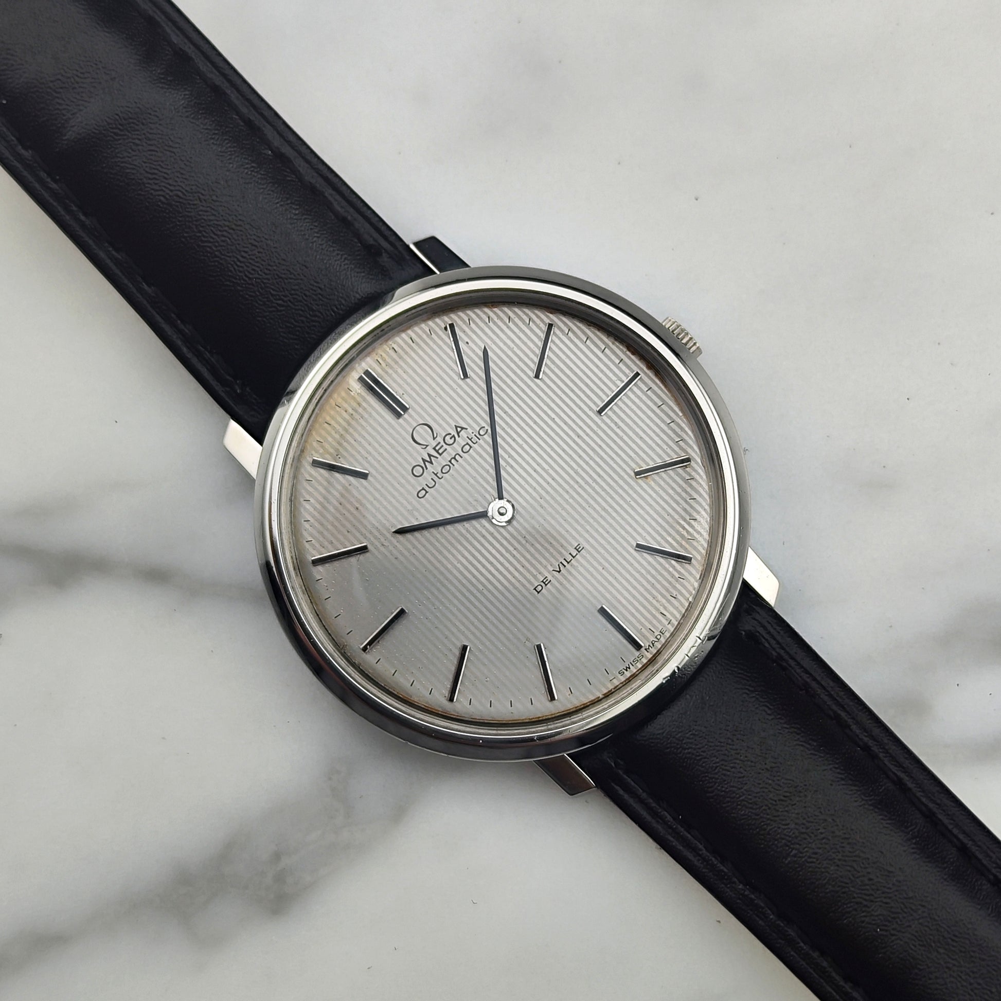 The Omega De Ville Automatic with rare white tapestry dial [Ref. 151.0039]. The movement has been inspected and tested. A wonderful, historically significant timepiece.