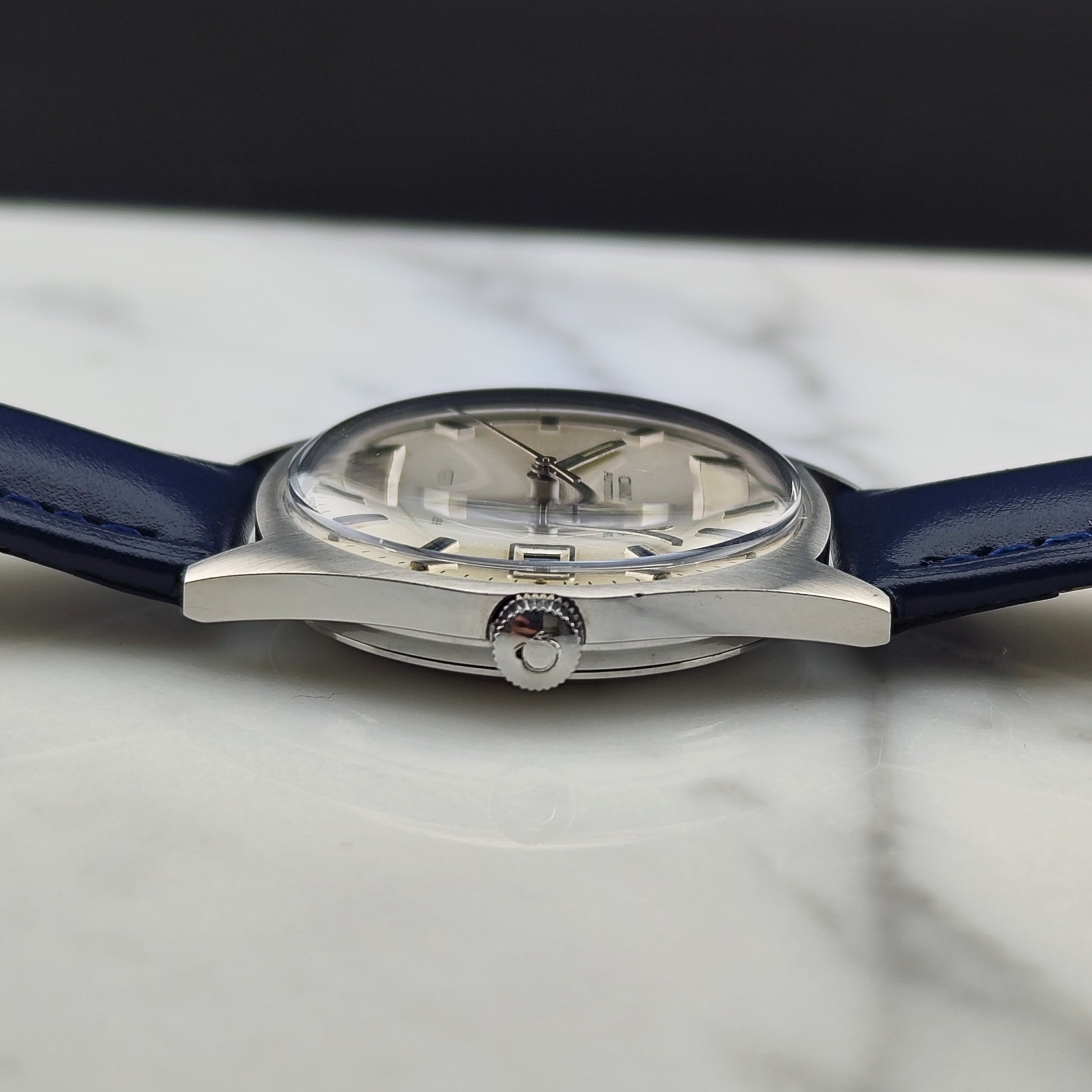 The Omega Genève Automatic [Ref. 166.041] with steel case and blue strap is presented here in near mint condition. Offering excellent timekeeping performance, it makes a superb addition to any collection. A true classic, crafted in 1969.
