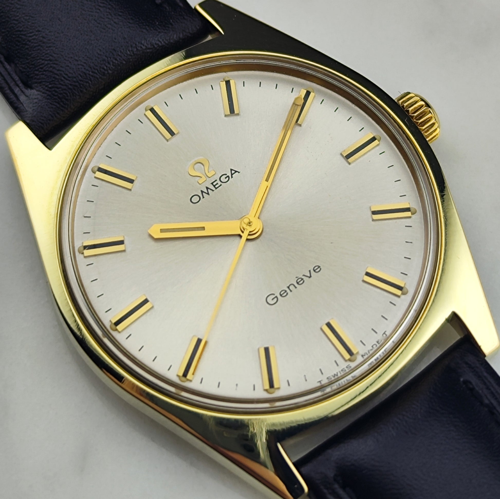 A true classic: the Omega Genève Gold White Dial [REF. 135.041] in excellent condition. This watch has received a full service from us and runs perfectly. All further details regarding the revision can be found below in the description. A wonderful option for you—plus, the original Omega box is included, making it the perfect gift for your loved ones!