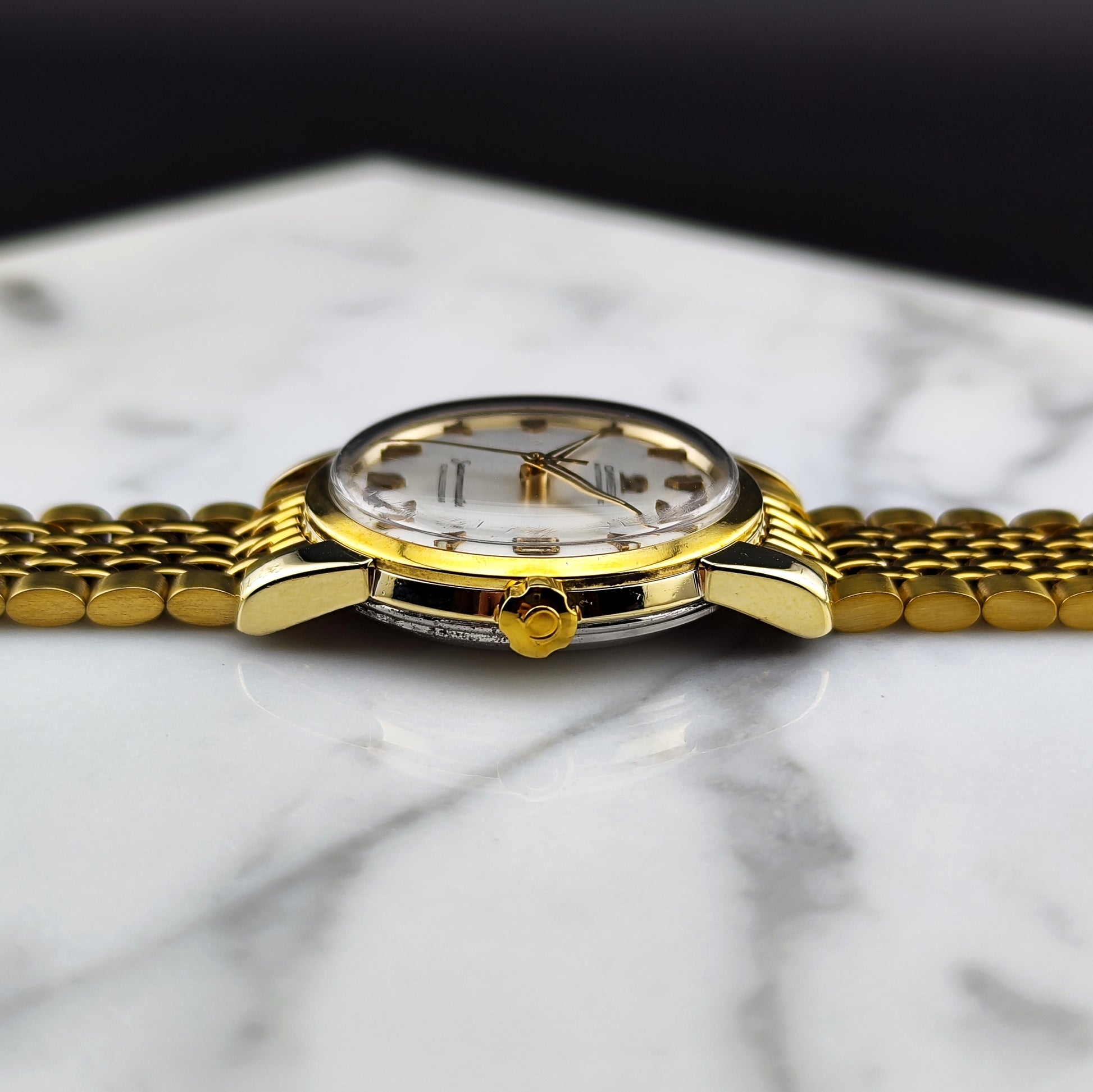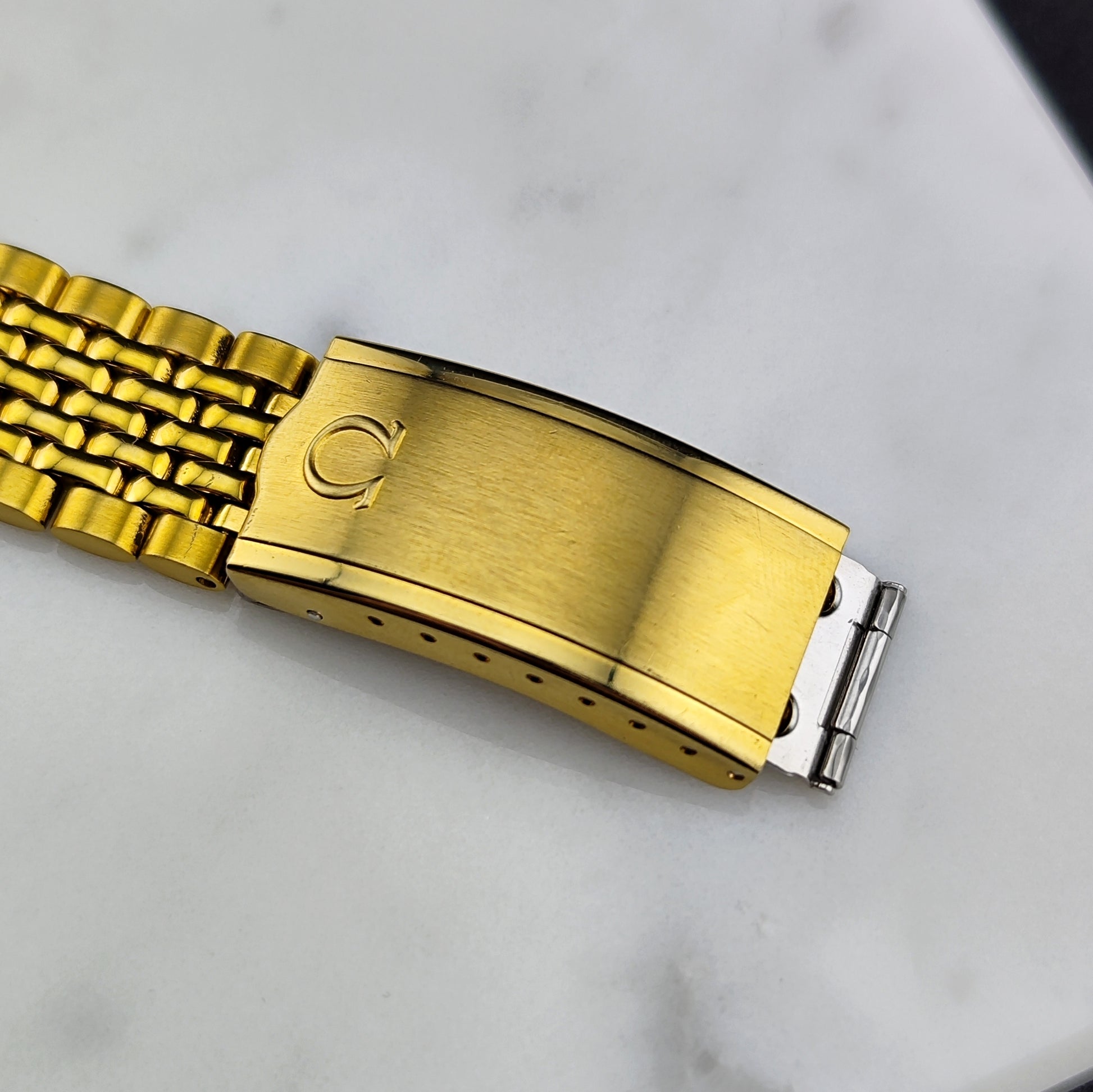 Here’s something you don’t see often, the Omega Seamaster Calendar Gold White Dial Super Rare [REF. 2849]. The original Omega crystal is still in place. It looks like something straight out of an '80s mafia movie - a stunning watch for those who love the extravagant. The movement has been tested and verified, making it a great gift for yourself or your loved ones.