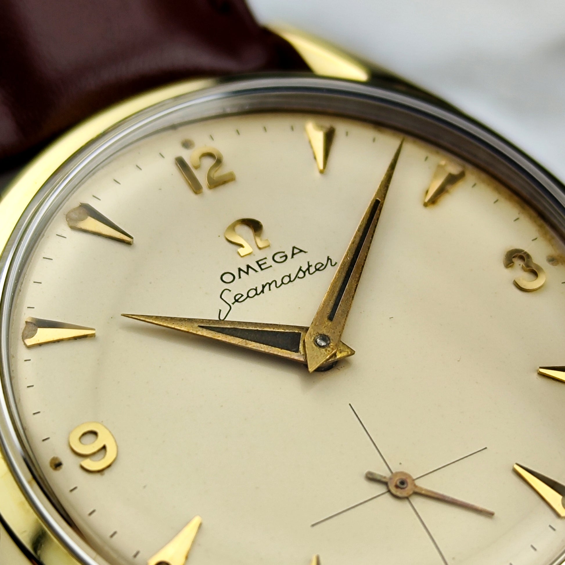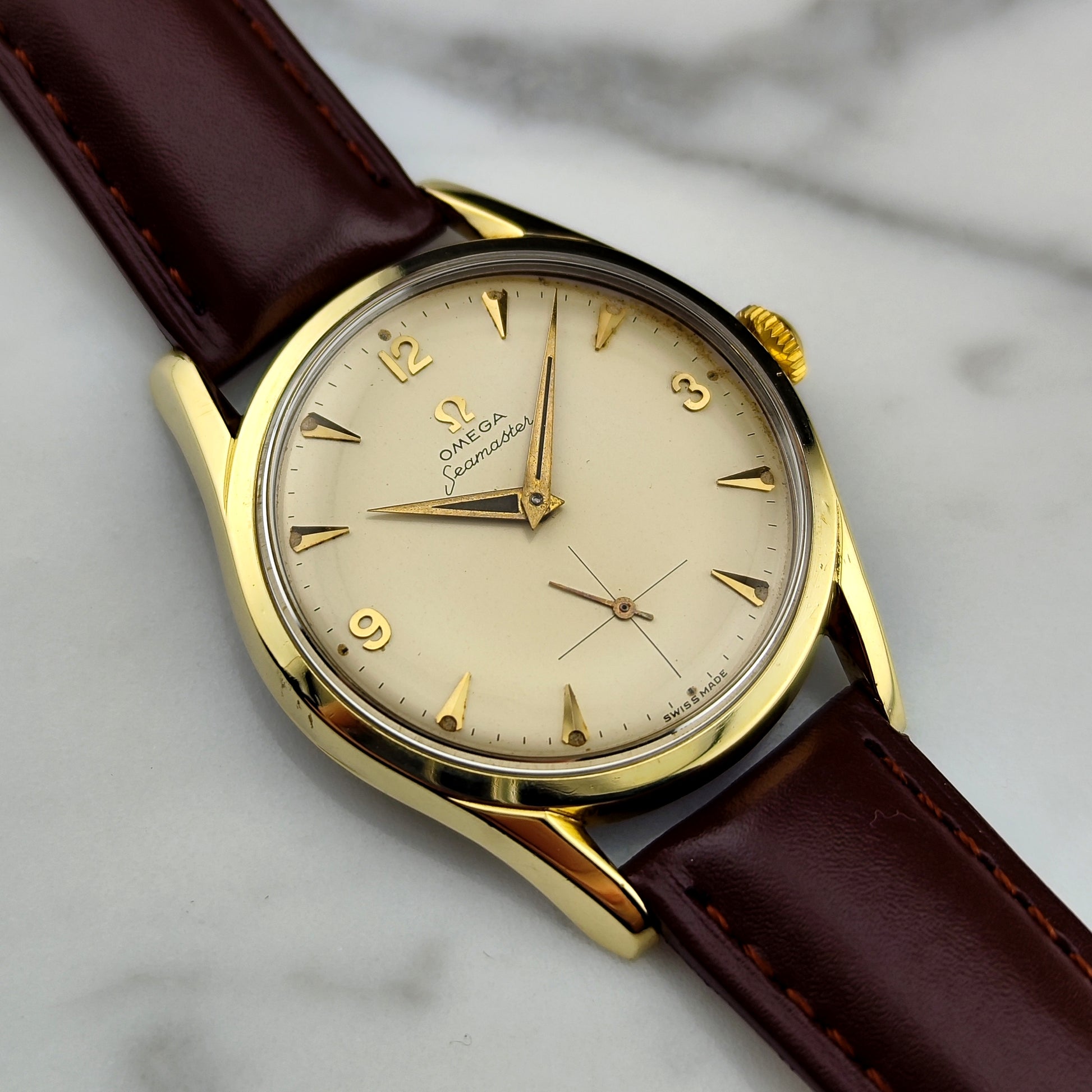 The Omega Seamaster Gold was serviced by us in January 2026 [Ref. 2937-2]. A beautiful, historically significant timepiece from 1958 — nearly 70 years old and in good condition. Don’t miss this opportunity.
