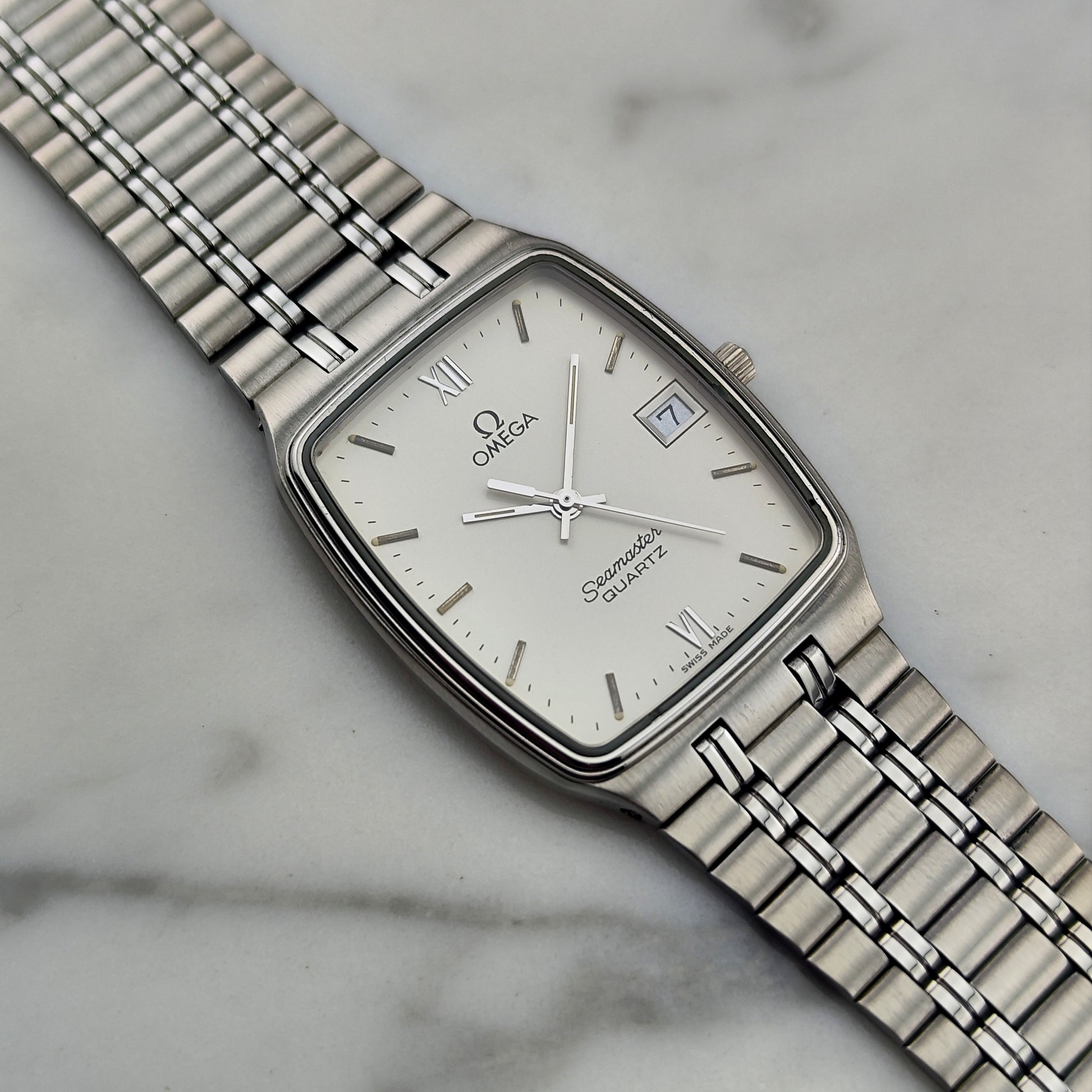 Omega Seamaster Quartz White Dial Date [REF. 196.0289] – a rare watch in good condition and a special edition. The movement has been tested and verified.