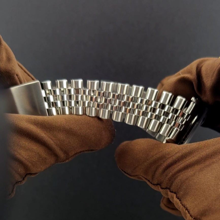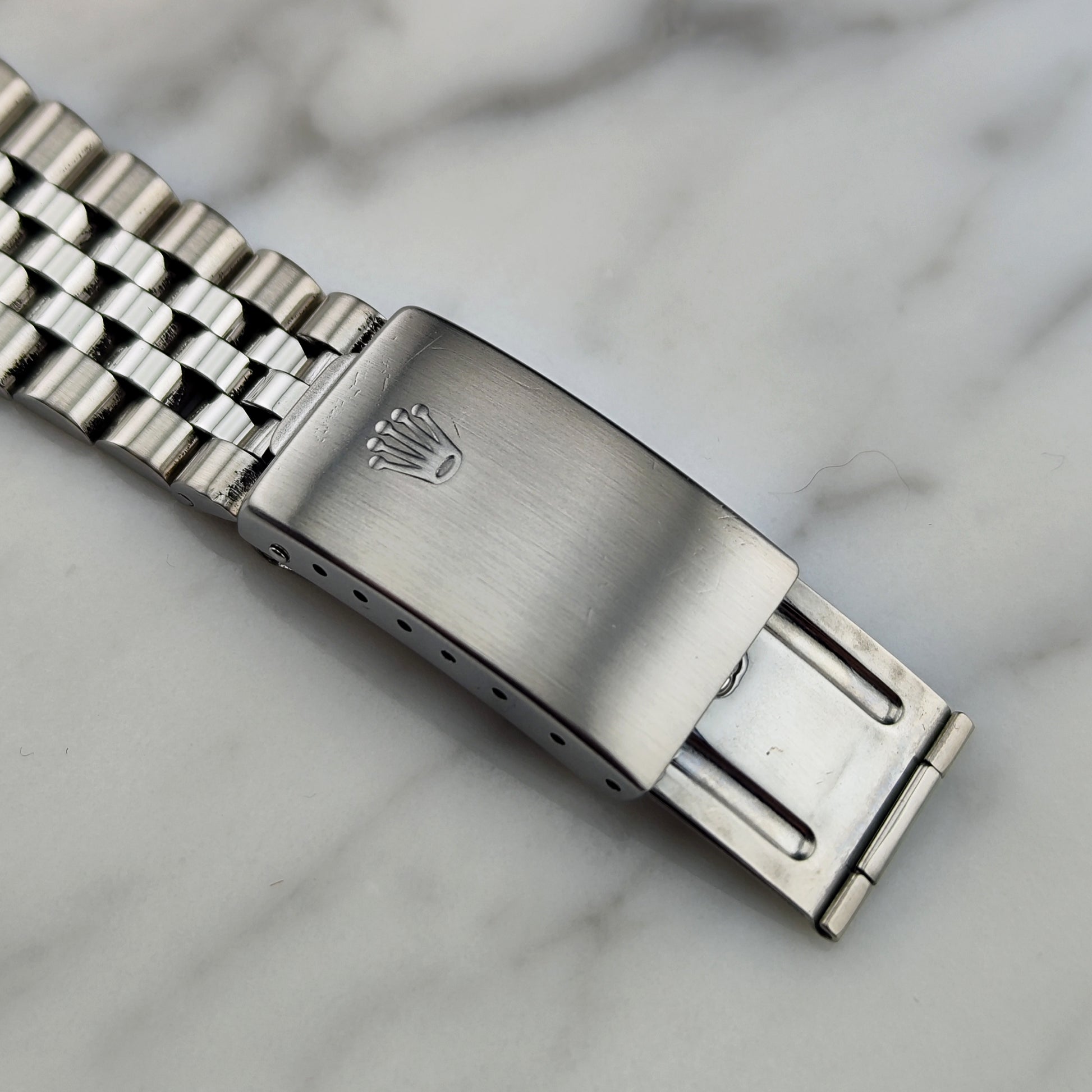 The absolute classic: the Rolex Datejust 36 with the black dial, Ref. 1603. We have just had the watch fully serviced; all work carried out is listed below. It is a wonderful option for you — the watch is in excellent cosmetic condition, and the bracelet stretch is still good, as shown in the photos. Don’t wait too long; this watch could be gone quickly.