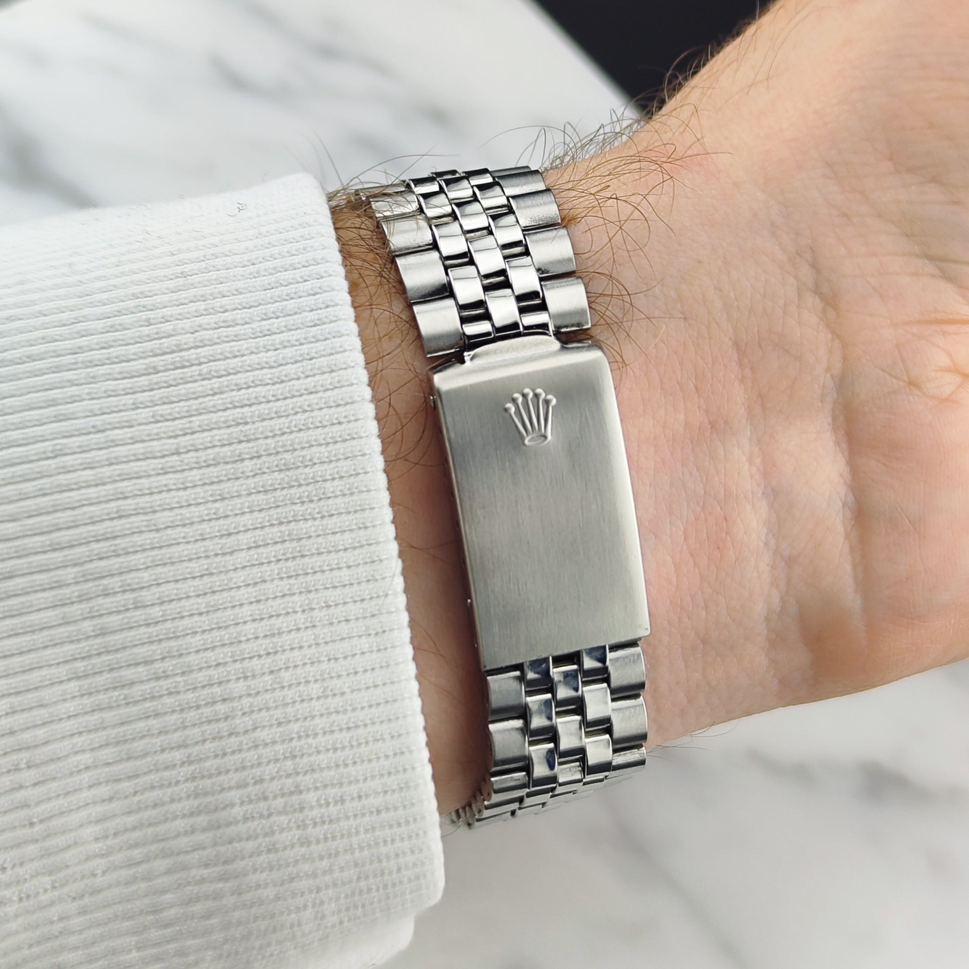 The Rolex Datejust 36 — a true classic. A new original Rolex bracelet has been fitted by us, featuring a beautiful stretch as shown in the pictures. The movement has been checked, and the timekeeping performance is excellent. A great option for entering the world of Rolex.