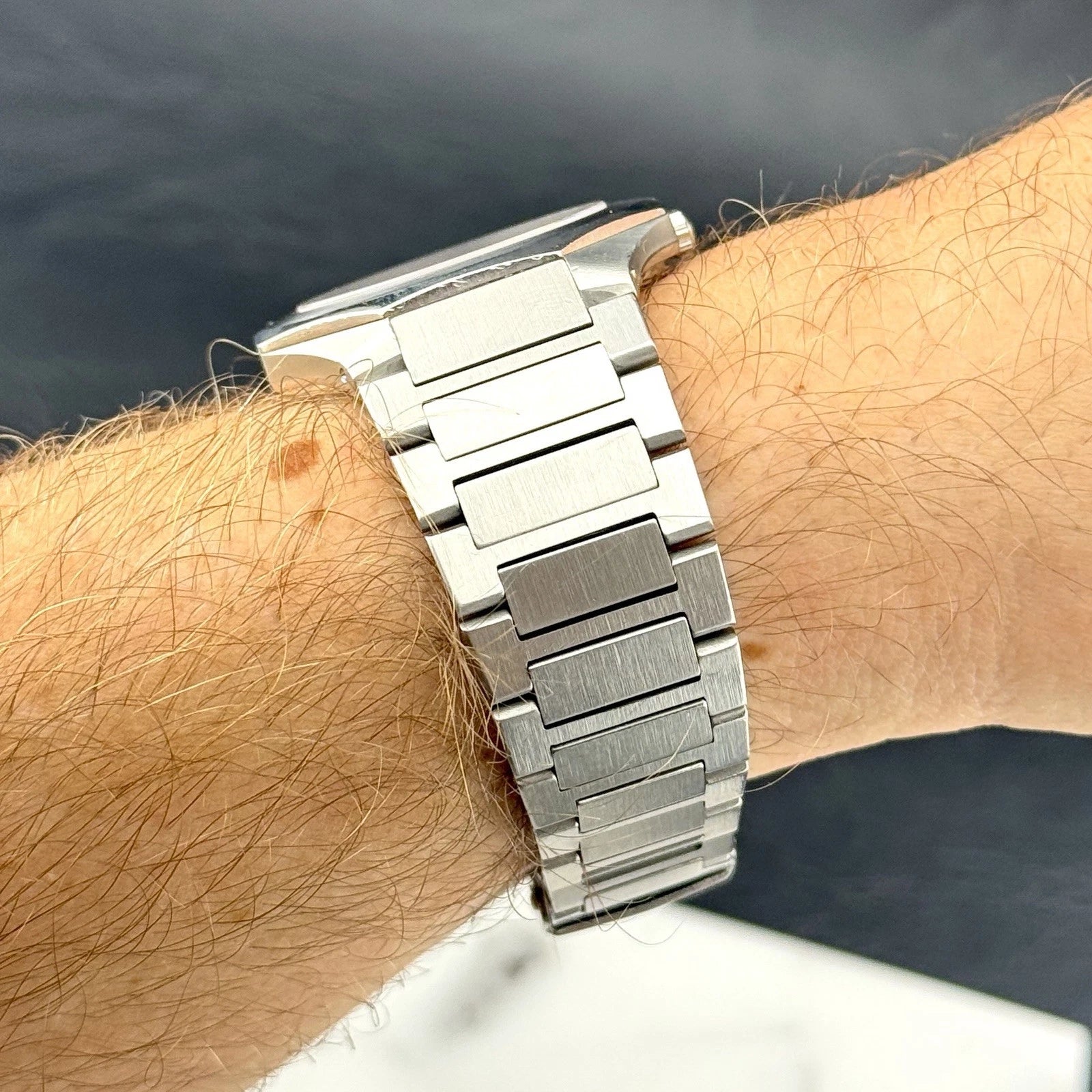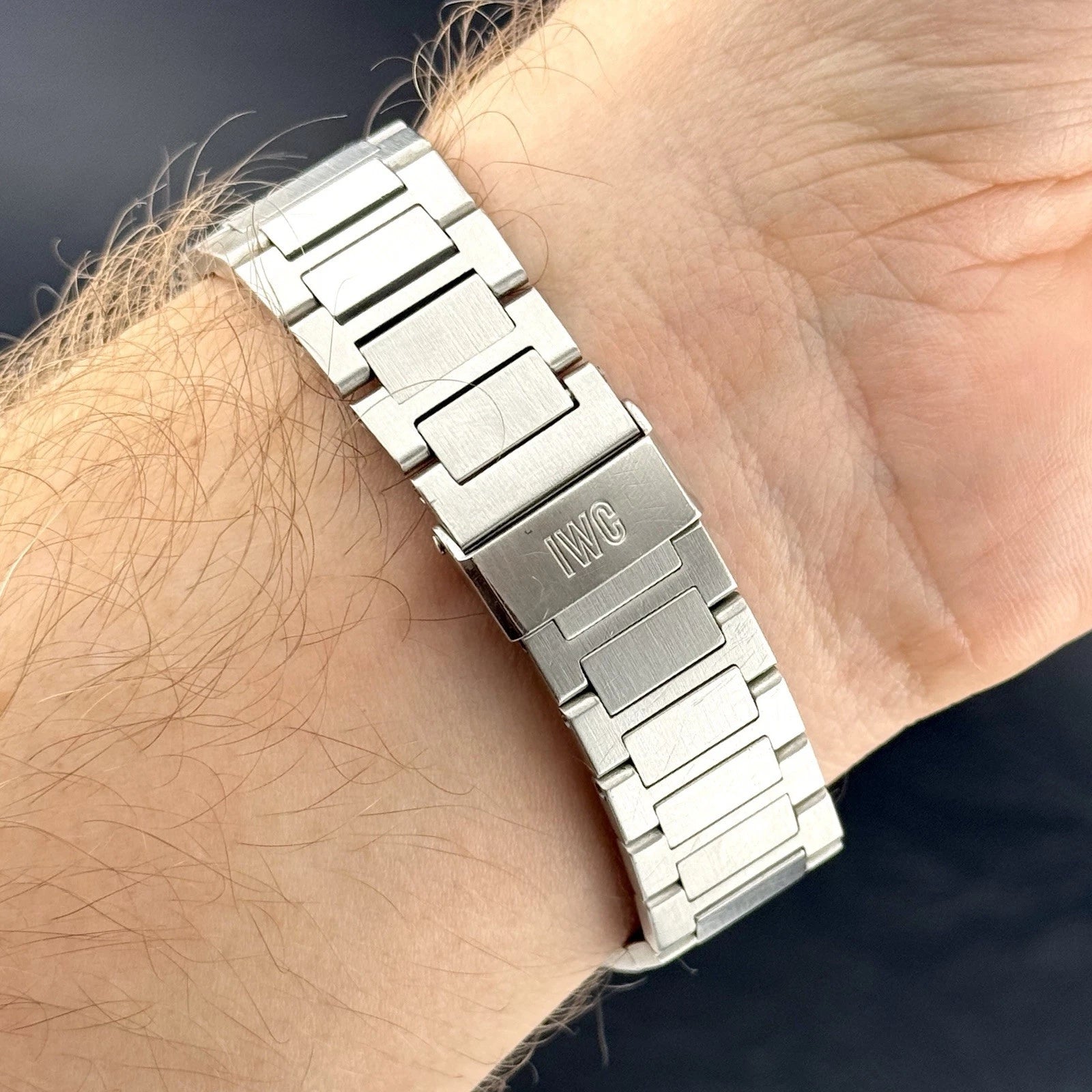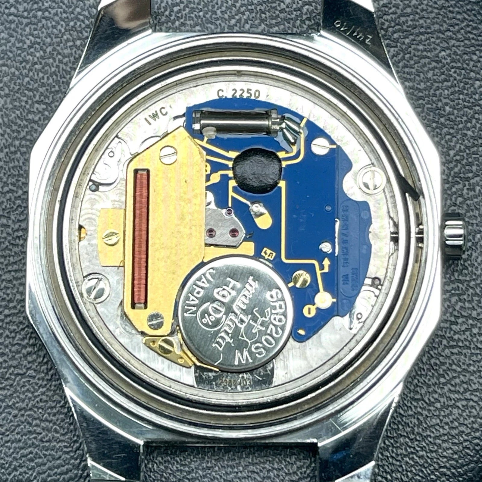 Die sehr seltene IWC Yacht Club II Quartz mit dem cremefarbenen Zifferblatt. Das Zifferblatt weist leichte Risse in der Nähe des Datumsfensters auf, die nur unter bestimmtem Licht sichtbar sind. Die IWC 3311 ist eine wunderbare Alternative zur Royal Oak, ohne das Budget zu sprengen.