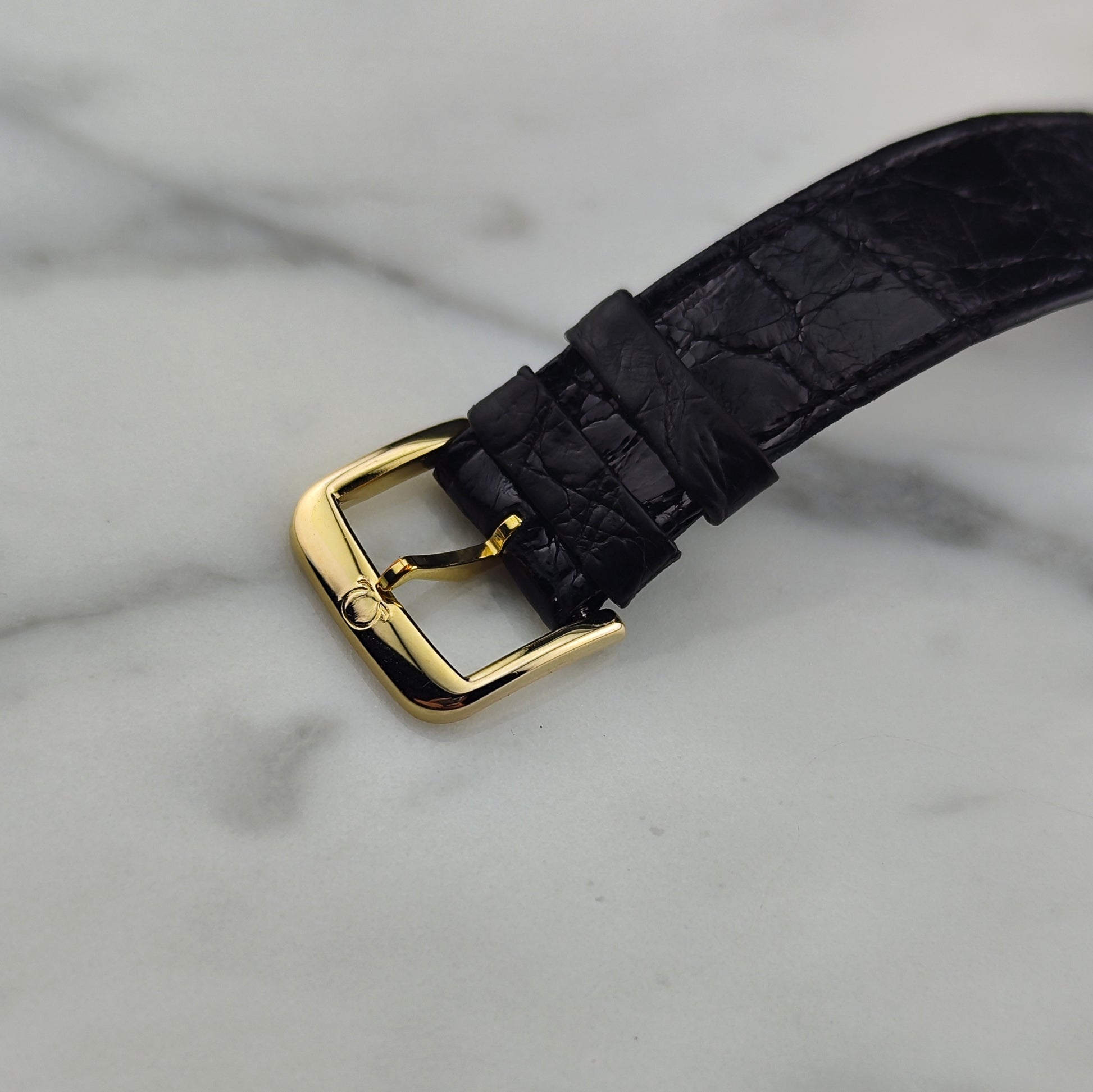 Die Omega De Ville Gold Quartz in neuwertigem Zustand [REF. 196.0312] ist ein Traum für Sammler. Fast alles an dieser Uhr ist original – das Lederarmband, die Krone, die Schließe und alle anderen Komponenten. Außerdem befindet sie sich in einem ausgezeichneten Gesamtzustand. Die originale Omega-Box ist ebenfalls enthalten. Die Lötstellen und das Uhrwerk wurden auf ihre Funktionsfähigkeit geprüft und alles funktioniert einwandfrei. Verpassen Sie diese Gelegenheit nicht.
