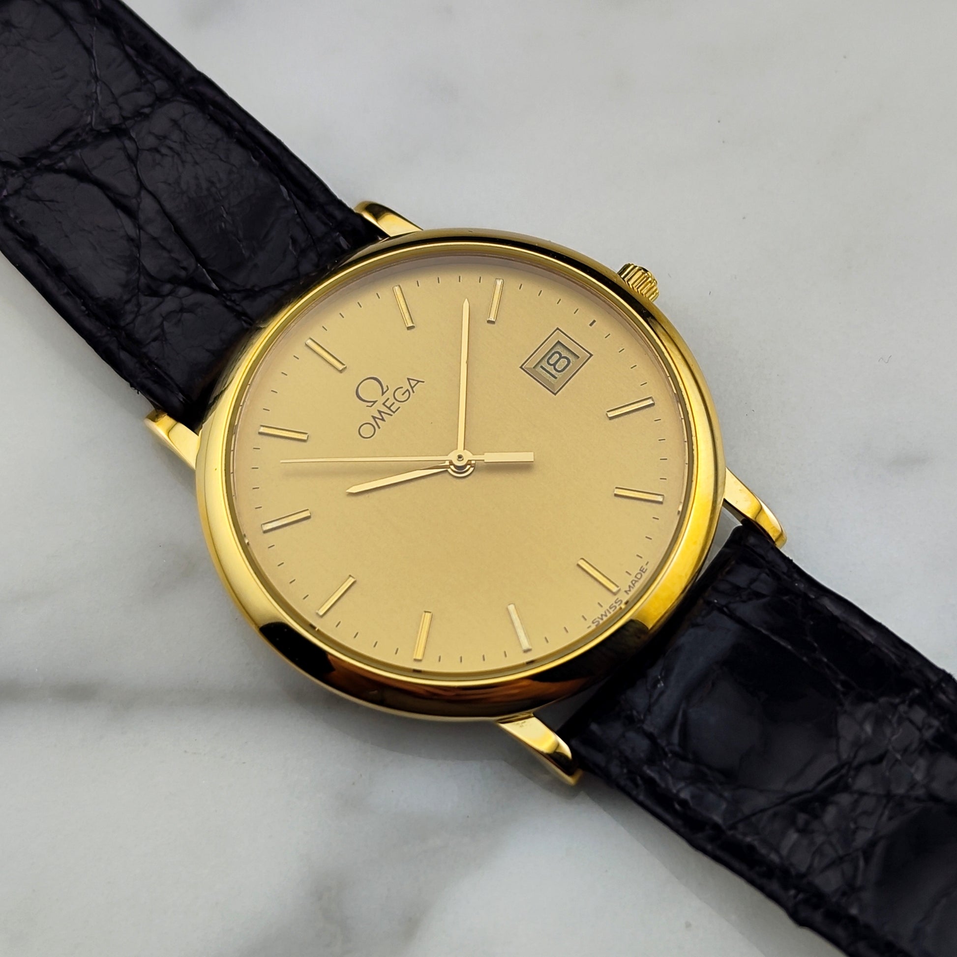 OMEGA De Ville Gold Date Quartz Mint+ with Original Box [REF. 196.0312]