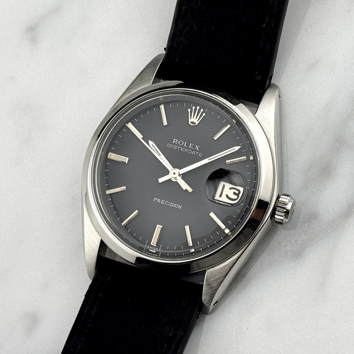 Die Rolex Oyster Precision mit dem seltenen schwarzen Zifferblatt und Datumsanzeige. Eine wunderbare, preislich attraktive Rolex, die ausgezeichnete Ganggenauigkeit bietet und sich in unglaublich gutem Zustand befindet.